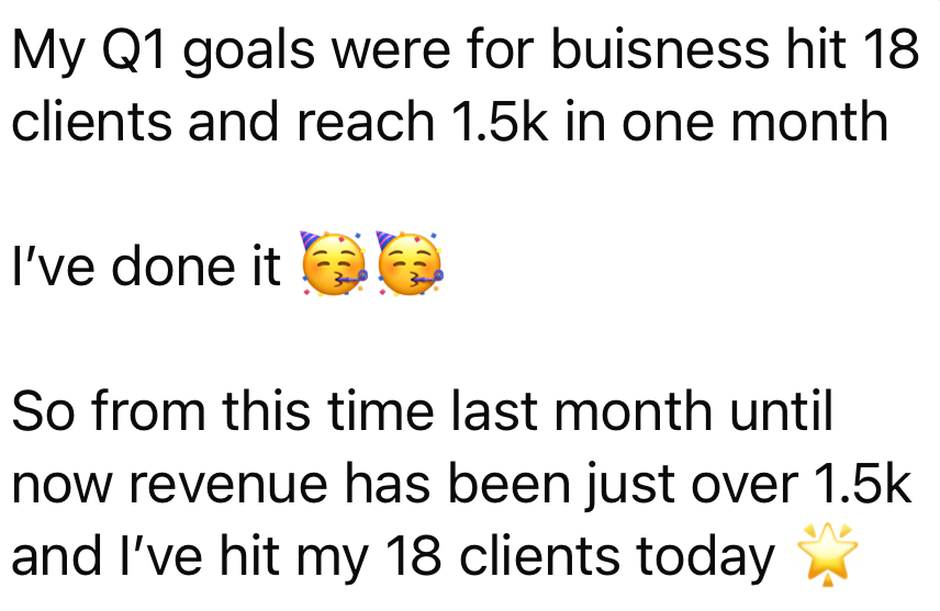 You achieve the income and money milestones - 5K, then 10K, then 15K months.