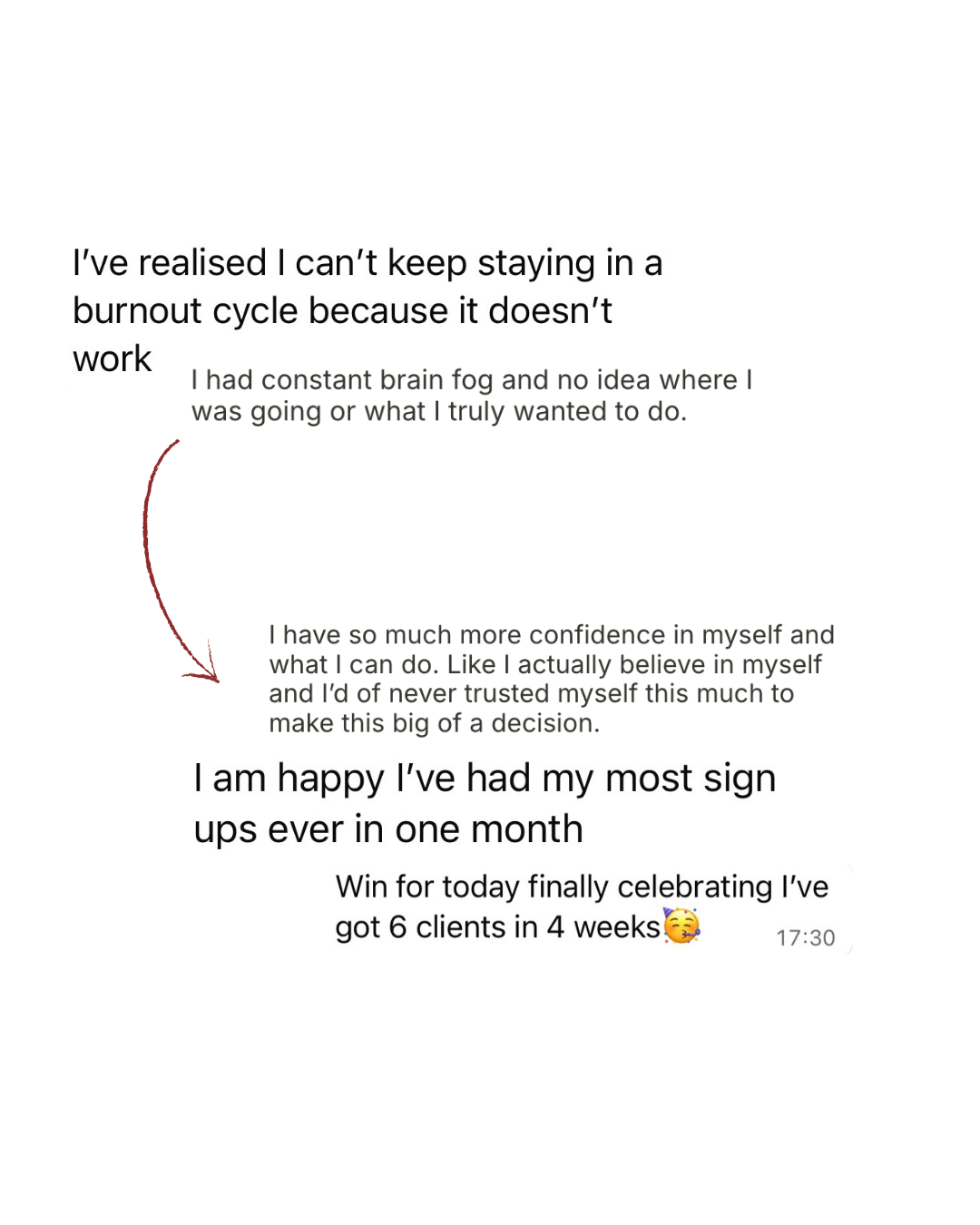 You achieve the milestone…but instead of feeling proud, you feel anxious, flat or panicked that you won’t sustain it.And that is the cycle we disrupt and remove, and that’s the ceiling we raise.